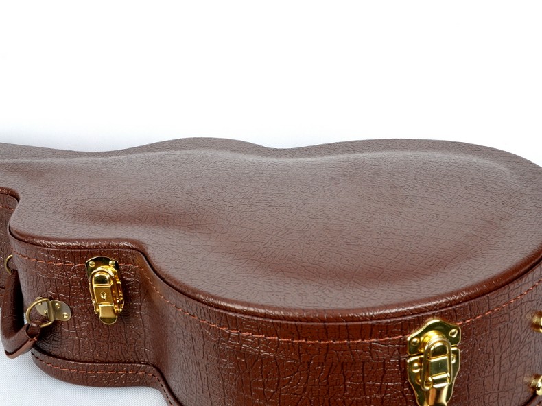 Konstrukcja wykonana ze sklejki drewnianej z pokrywą "arch top" doskonale chroni instrument przed uszkodzeniami. Futerał gitarowy pokryty jest na zewnątrz sztuczną skórą. Wewnątrz wyścielony gąbką i gęstym pluszem. Tworzy to doskonałą izolację termiczną i amortyzację instrumentu. Ten futerał gitarowyaktualnie występuje w dwóch wersjach kolorystycznych. Przybliżona waga 4,7 kg. Futerał wyposażony jest w skórzaną rączkę i pięć zameczków, z czego jeden na kluczyk. Wewnątrz schowek na akcesoria. Wymiary zewnętrzne futerału na gitarę akustyczną typu auditorium: 112cm x 46cm x 19cm. Wyprodukowano w Chinach.Maksymalne wymiary instrumentu, jaki mieści się w tym futerale, podaje poniższy rysunek.